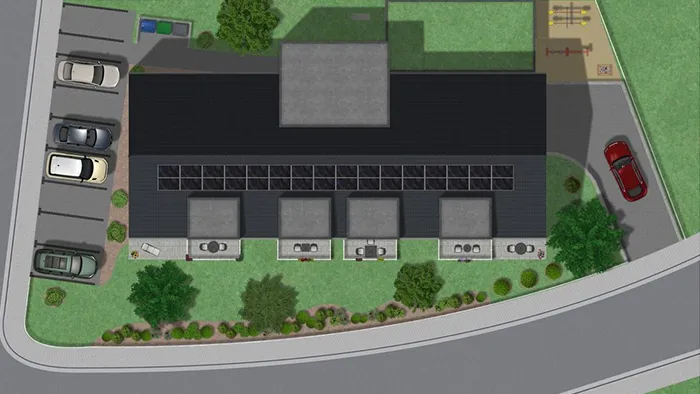Das Gebäude wird nach den Vorgaben des Gebäudeenergiegesetzes 2024 (GEG 2024) errichtet und entspricht dem Effizienzhausstandard 55. Durch die Kombination aus Luft-Wasser-Wärmepumpe und Photovoltaikanlage wird eine nachhaltige und