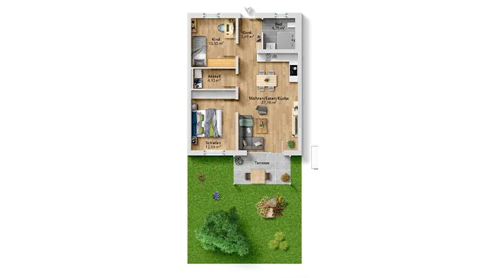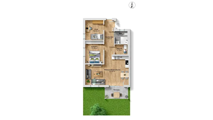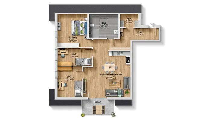 • Hochwertiger Vinylboden in Wohn- und Schlafräumen